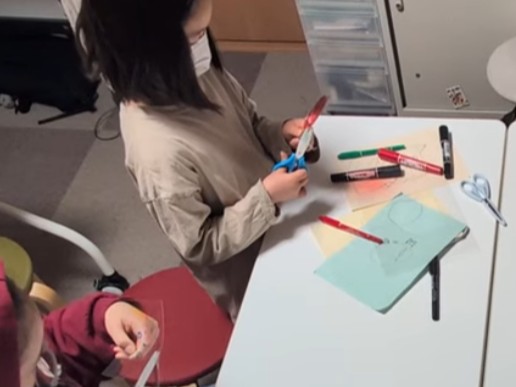 シール台紙に貼って、はさみで切る工程では、 「ここは丸くしたい」 「線ギリギリまで切りたい」 と、細部にこだわる姿がたくさん見られました。